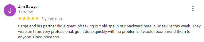 TCJ Hauling Offers Same Day Spa Removal Service in the Greater Sacramento area and Guaranteed Satisfaction