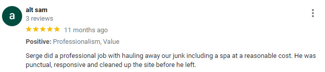 We have used Serge on 3 separate haul away projects now and he has been awesome to work with each time. He has great communication and his pricing is fair, and he always does a great job. We will continue to use him for all of our hauling needs!